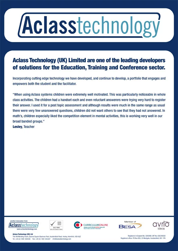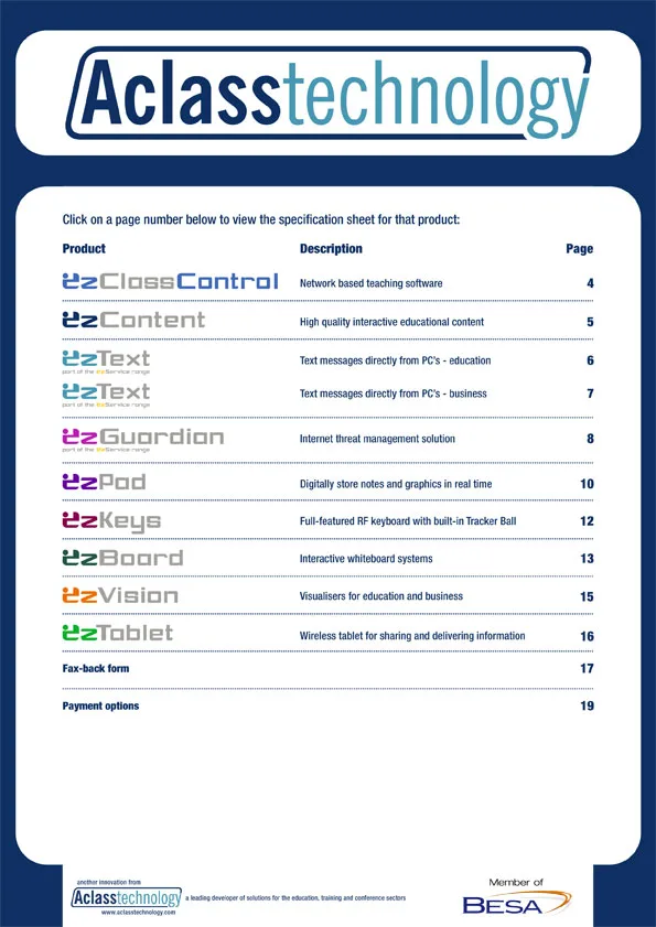 Aclass interactive product PDF An interactive product PDF for Aclass Technology products and distributed online. Illustrator InDesign PDF Photoshop Print design View more projects