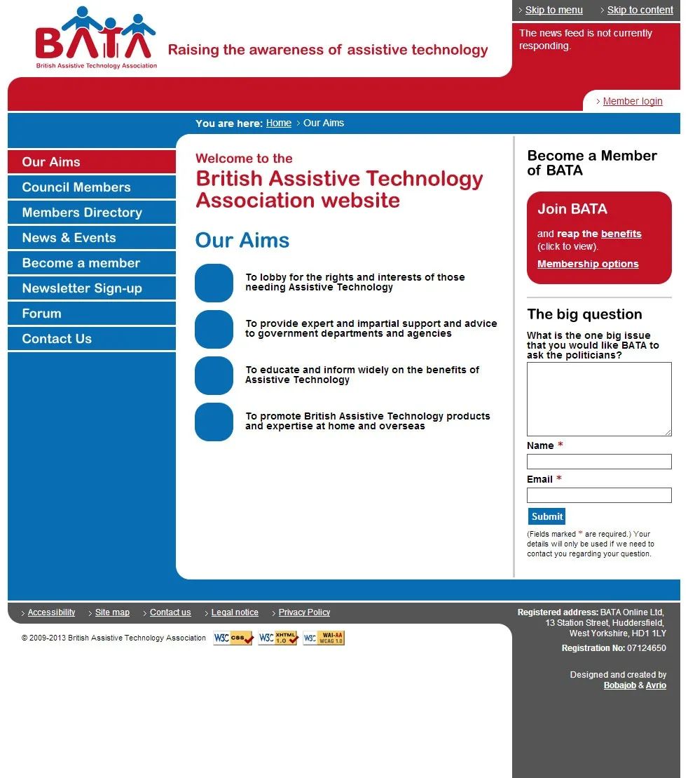 British Assistive Technology Association website Website for the British Assistive Technology Association built in Classic ASP with bespoke CMS. Classic ASP CSS Dreamweaver HTML Illustrator jQuery MS SQL Photoshop Website design View more projects