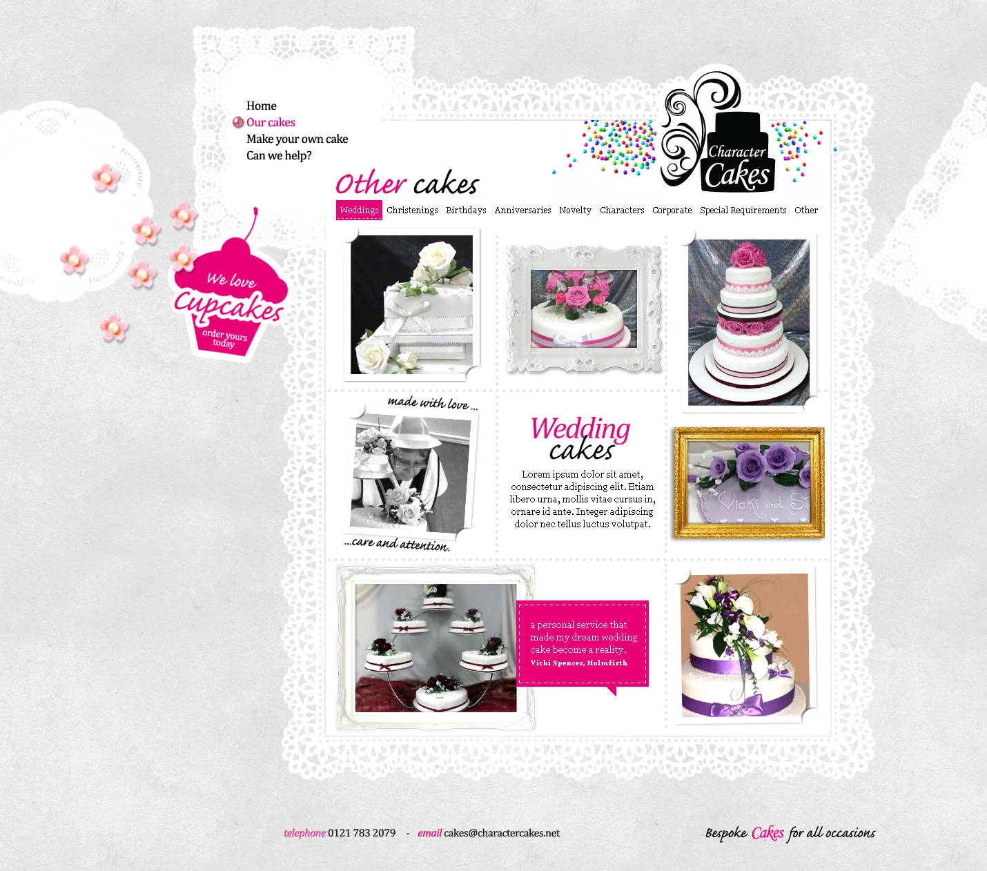 Character Cakes A brochure site built in Concrete5 CMS allowing updating of the portfolio of cakes. Concrete5 CSS Dreamweaver HTML Illustrator jQuery mySQL Photoshop PHP Website design View more projects