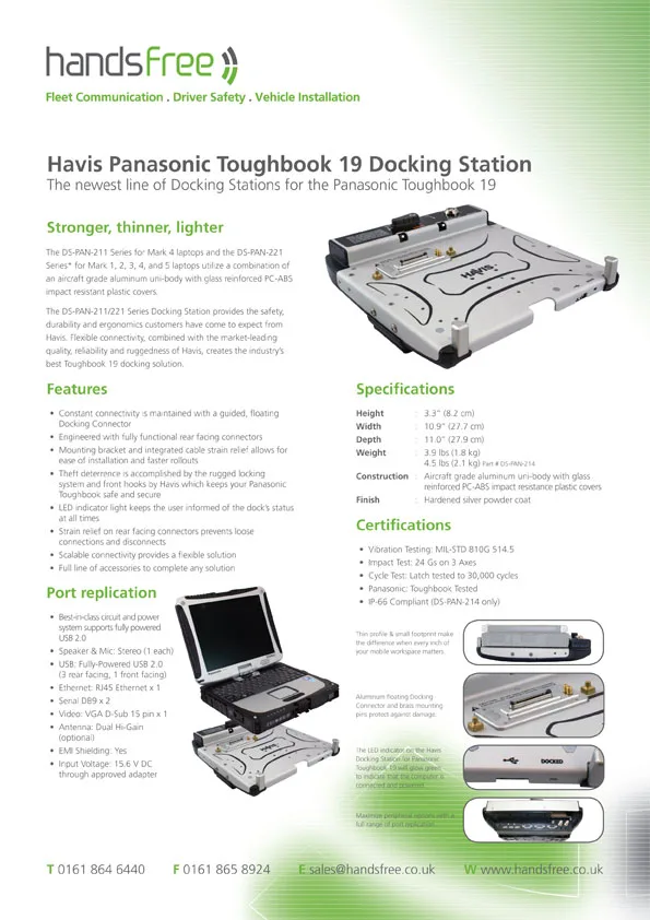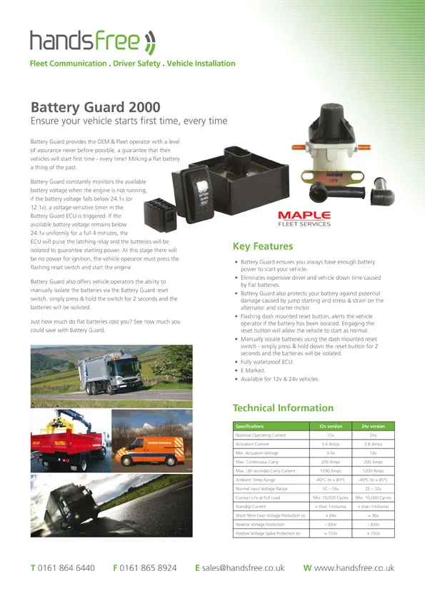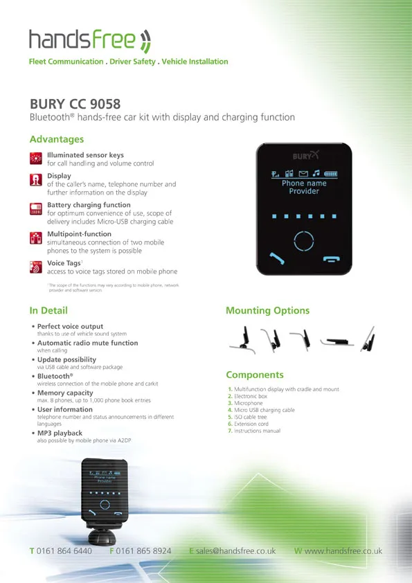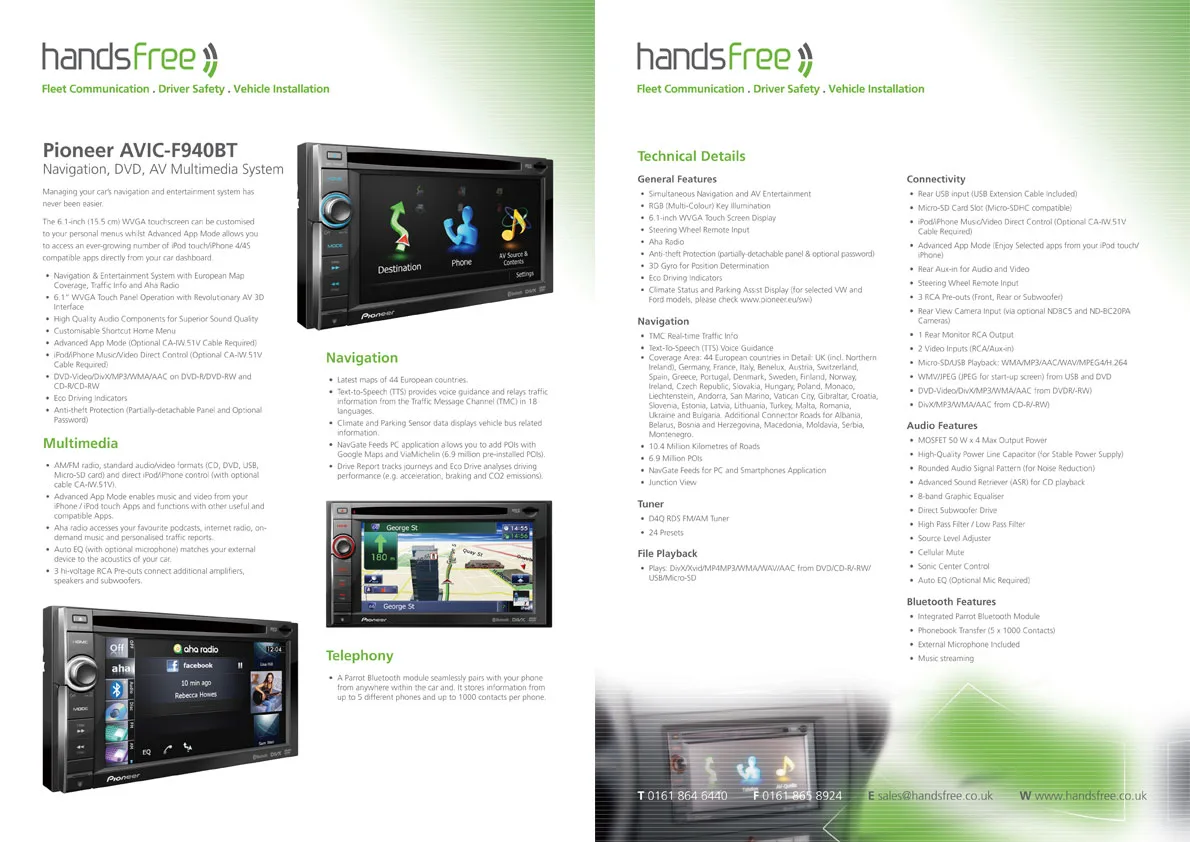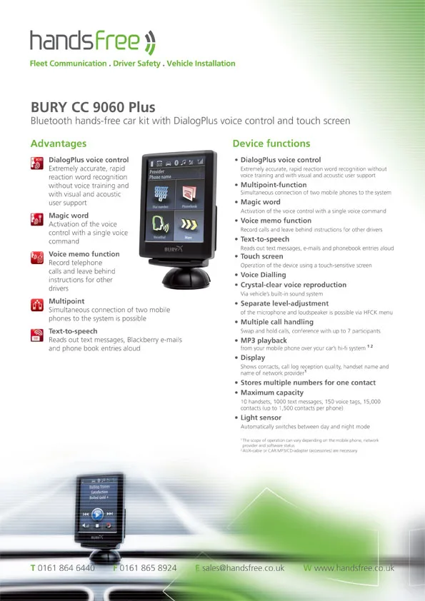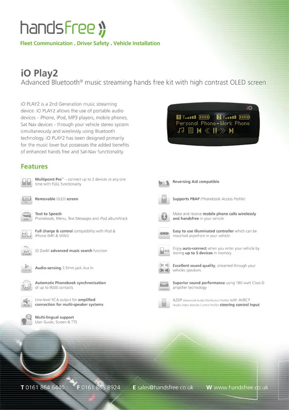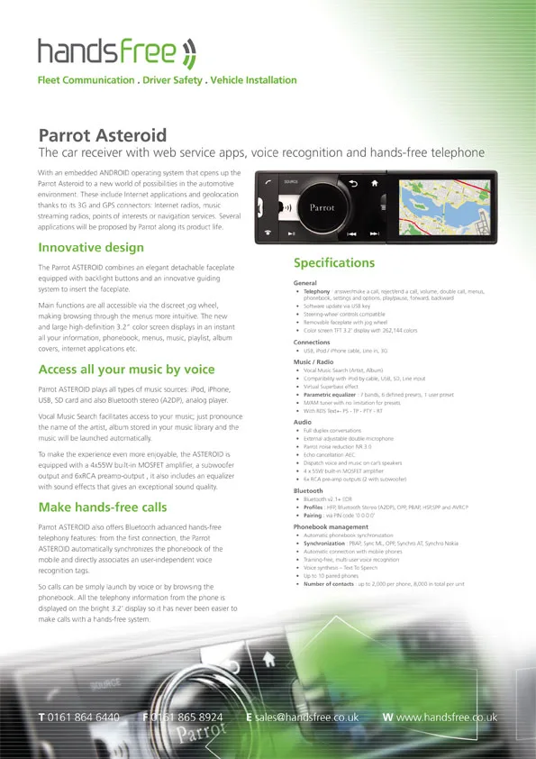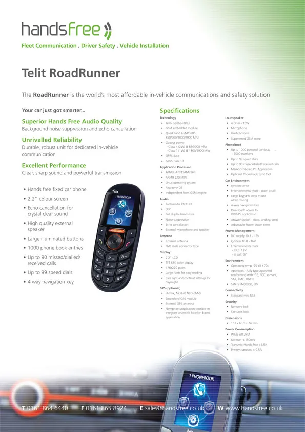 Handsfree specification sheet