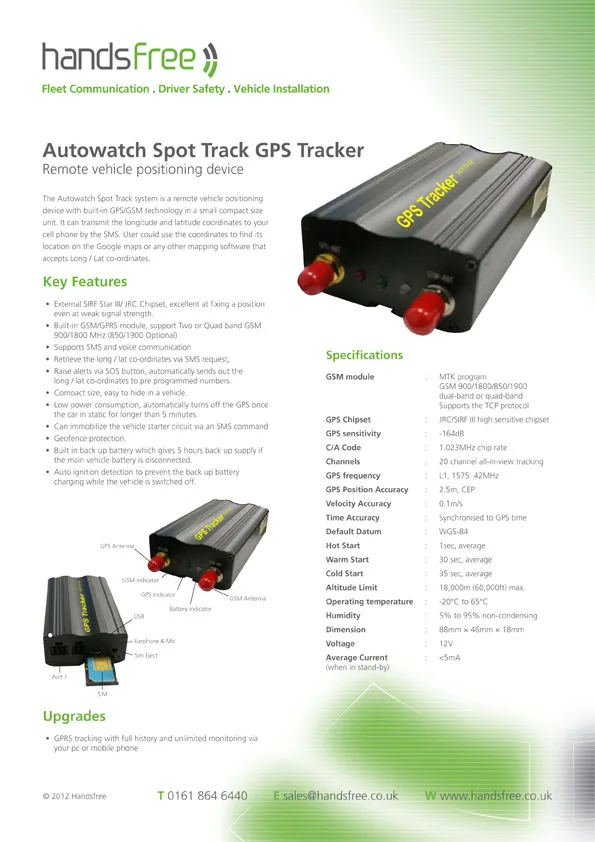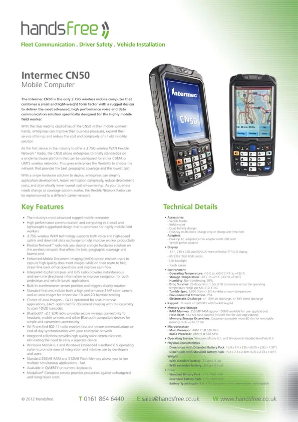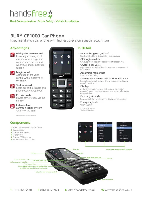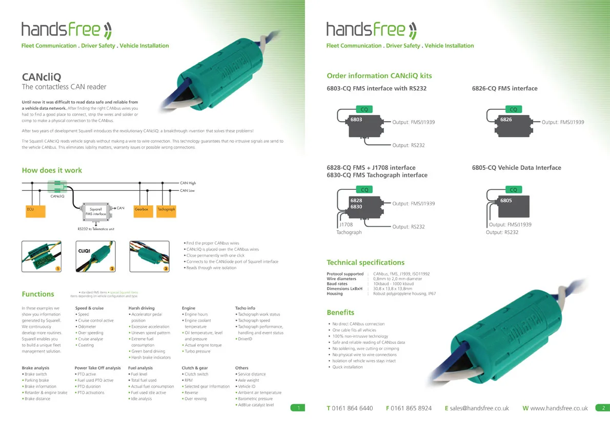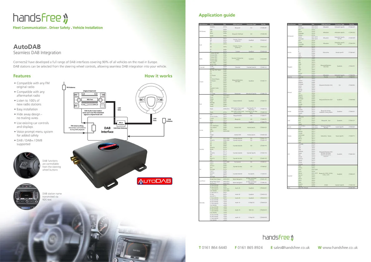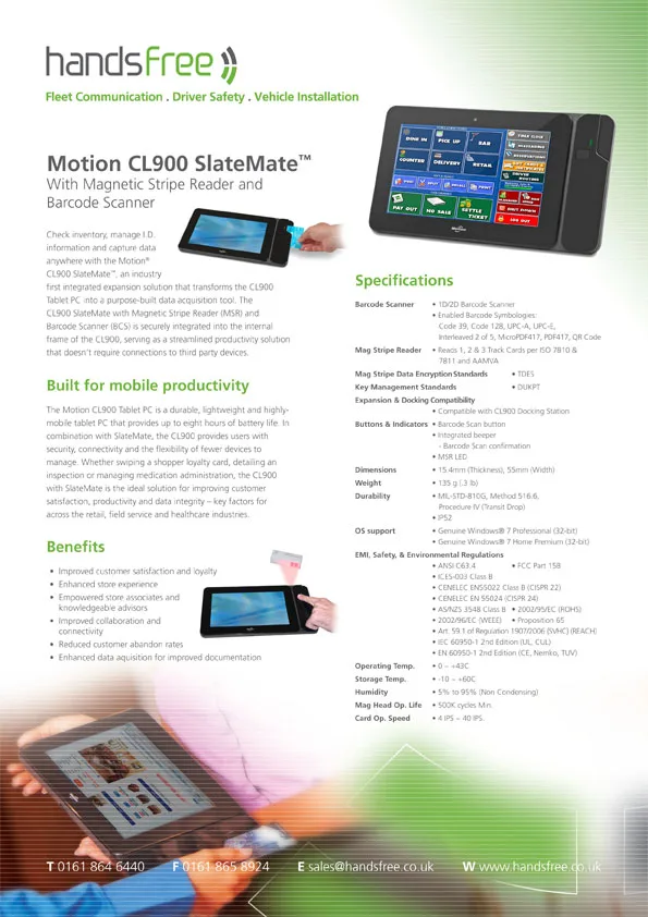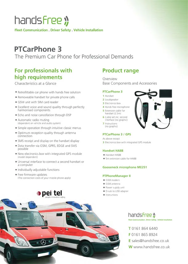 Handsfree specification sheet