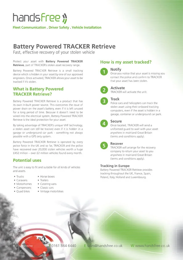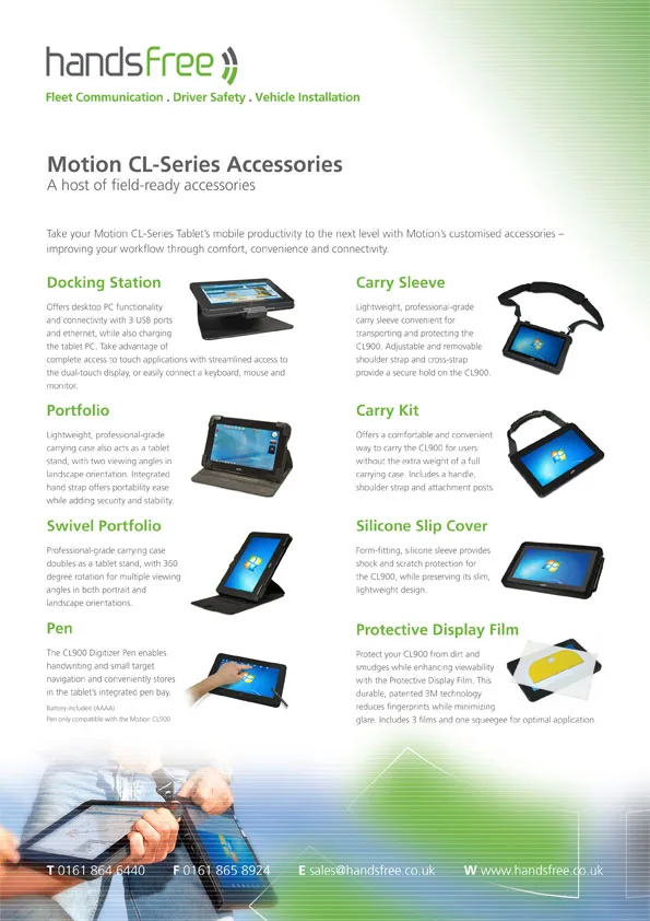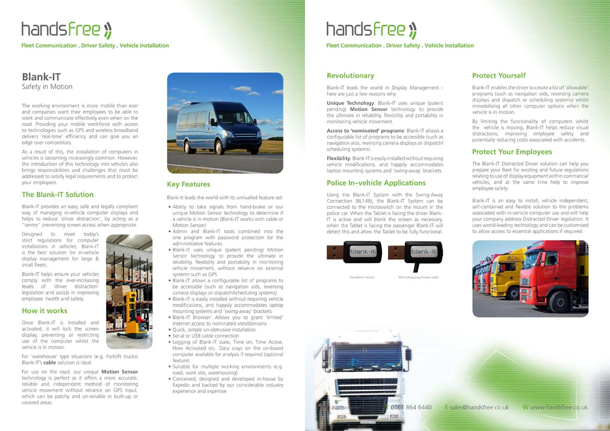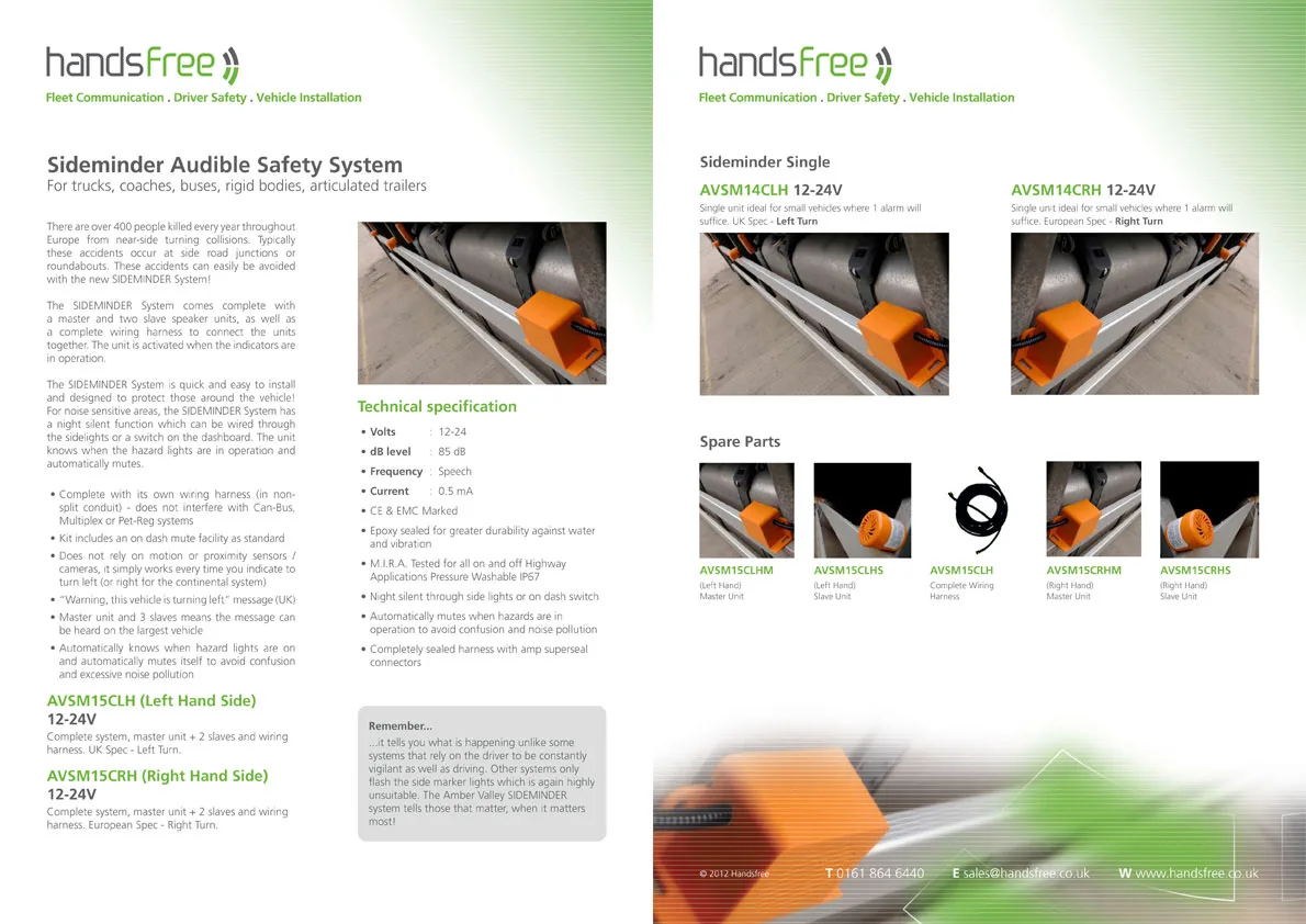 A selection of the numerous PDF product specification sheets created for Handsfree.