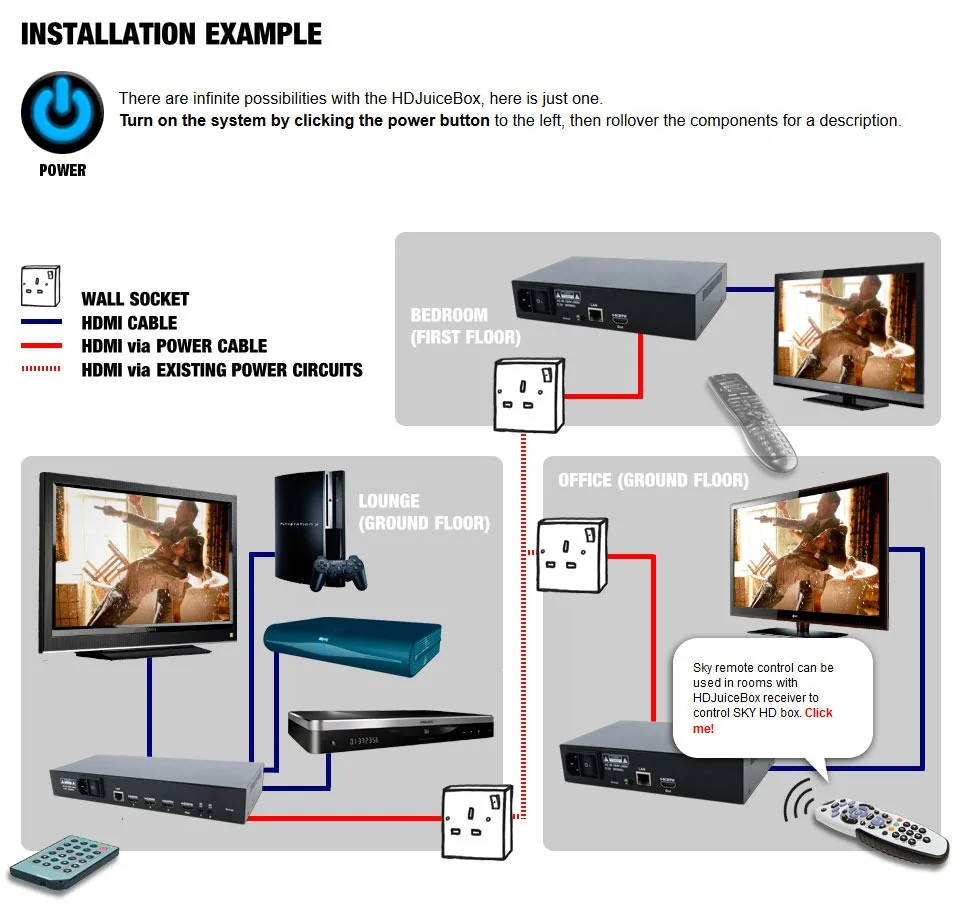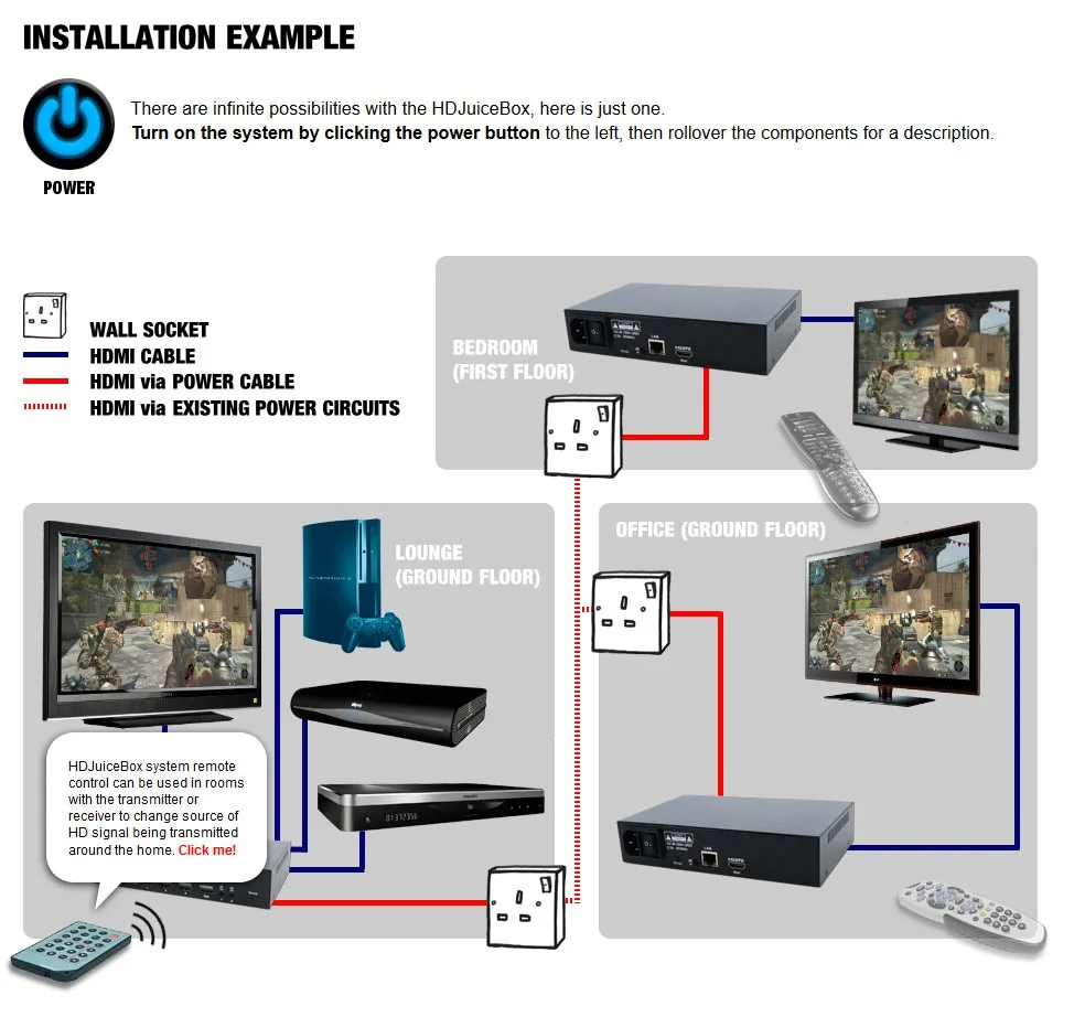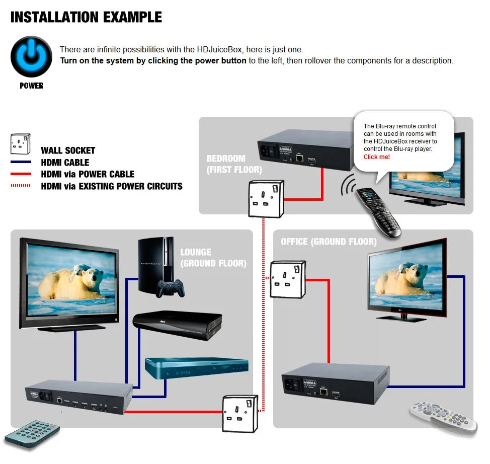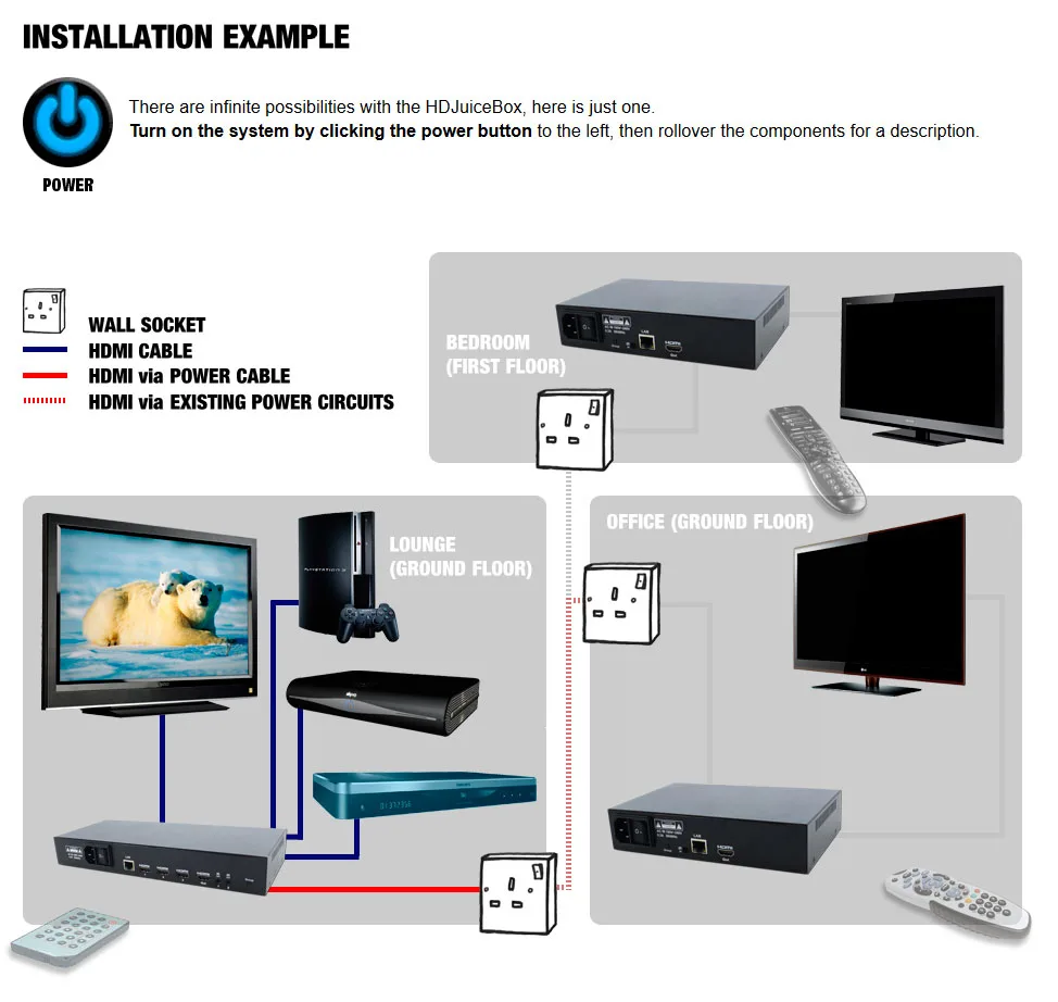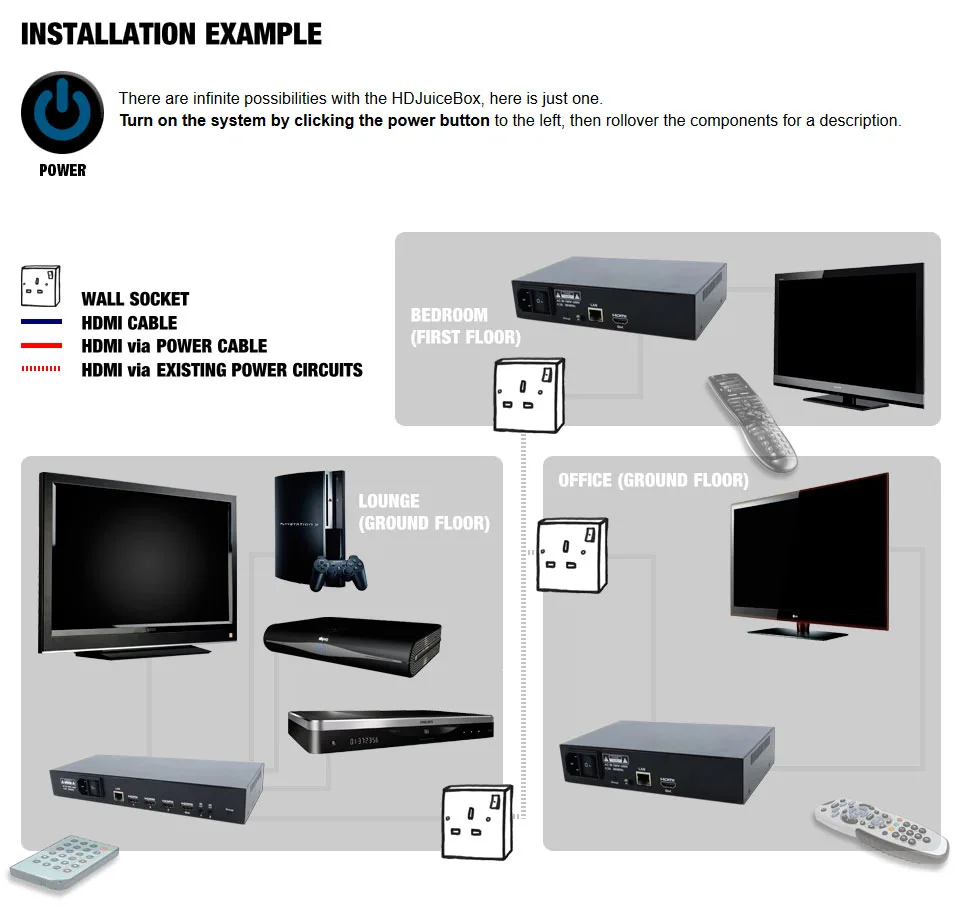 HDJuiceBox jQuery demonstration Interactive demonstration of the HDJuiceBox HDMI over Powerline kit created in Jquery. CSS Dreamweaver HTML Illustrator jQuery Photoshop Website design View more projects