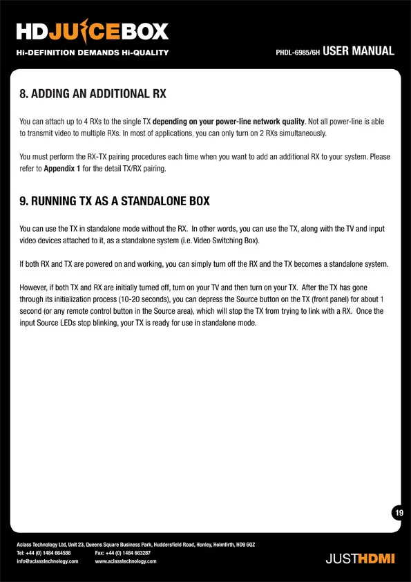 HDJuiceBox Manual A 32 page manual for the HDJuiceBox HDMI over Powerline kit distributed by JustHDMI. Illustrator InDesign PDF Photoshop Print design View more projects