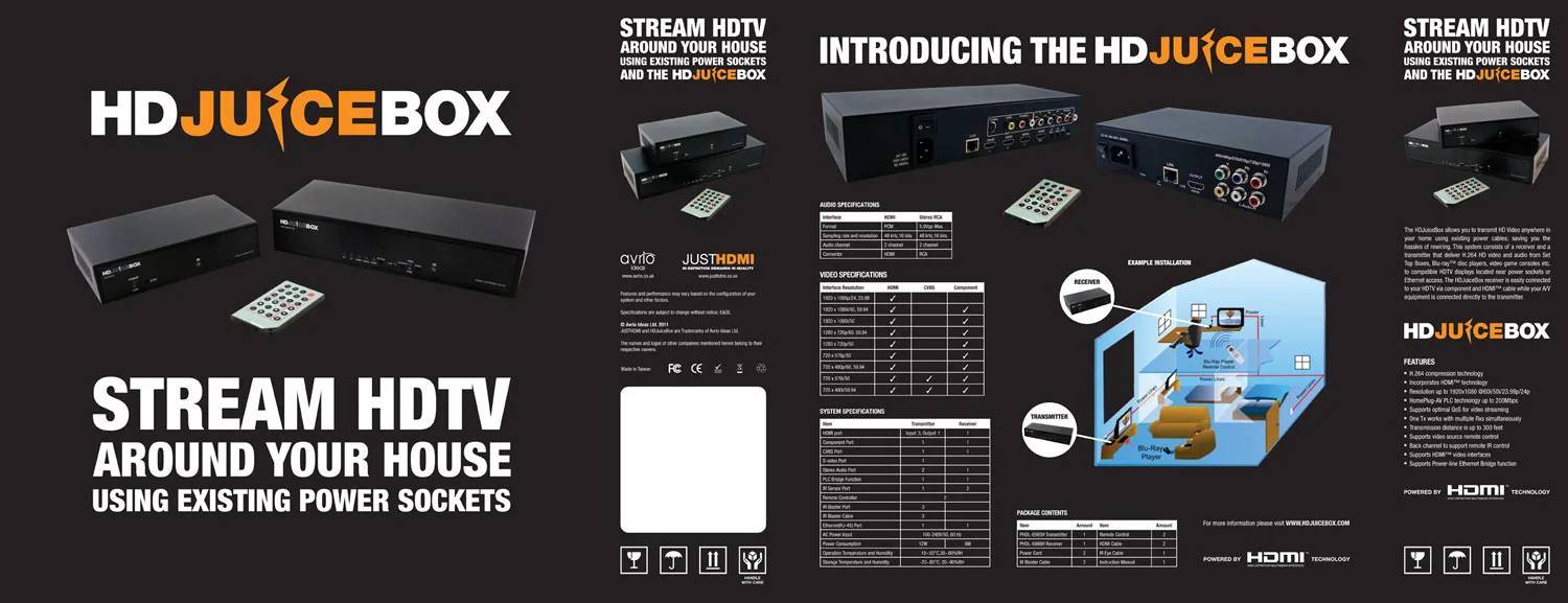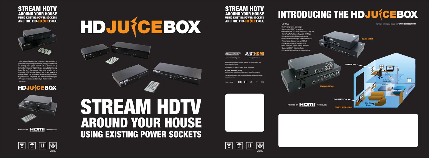 HDJuiceBox product packaging A packaging sleeve for the HDJuiceBox HDMI over Powerline kit. Illustrator InDesign Packaging design Photography Photoshop Print design View more projects