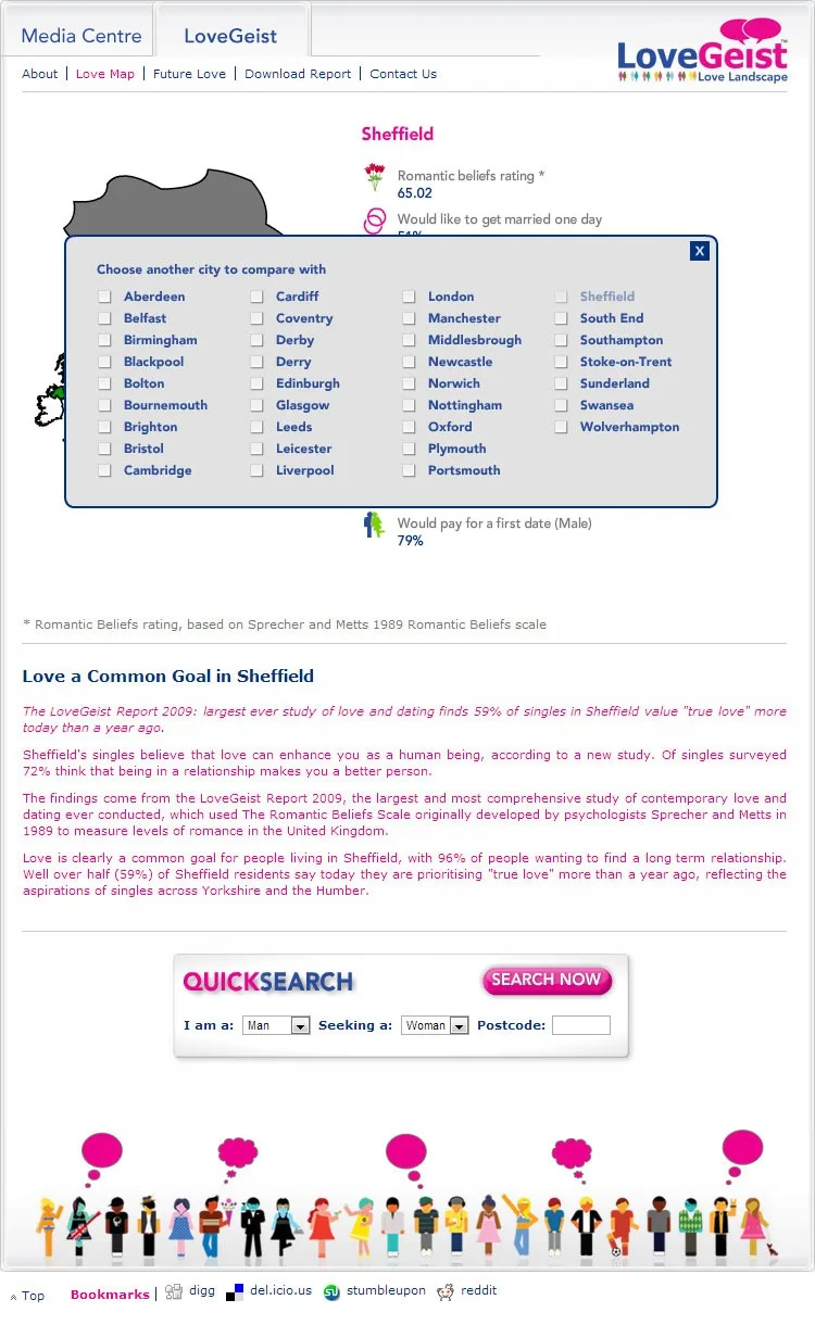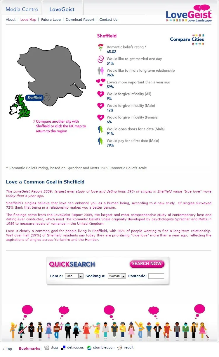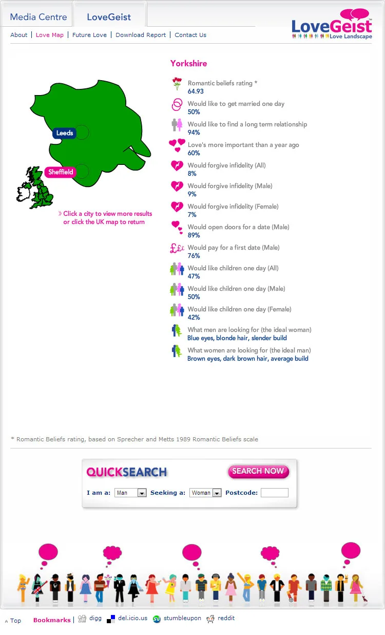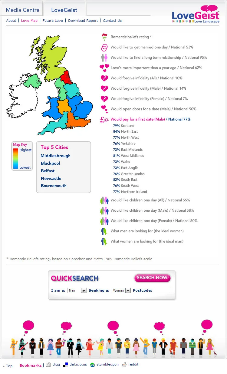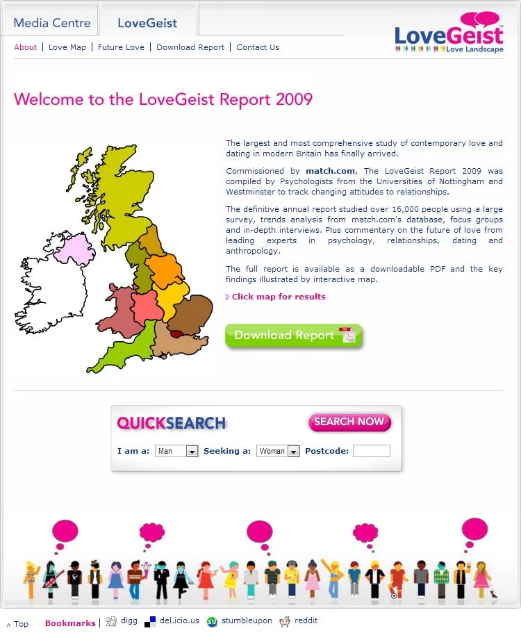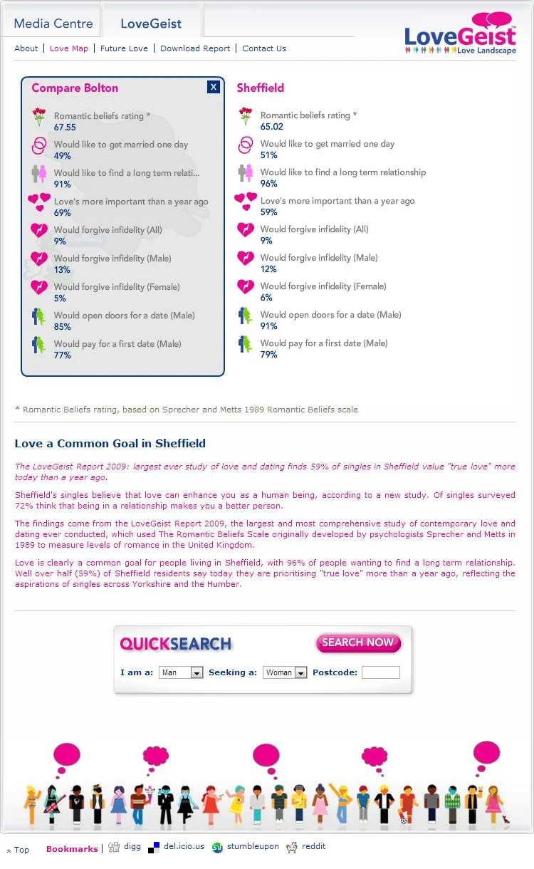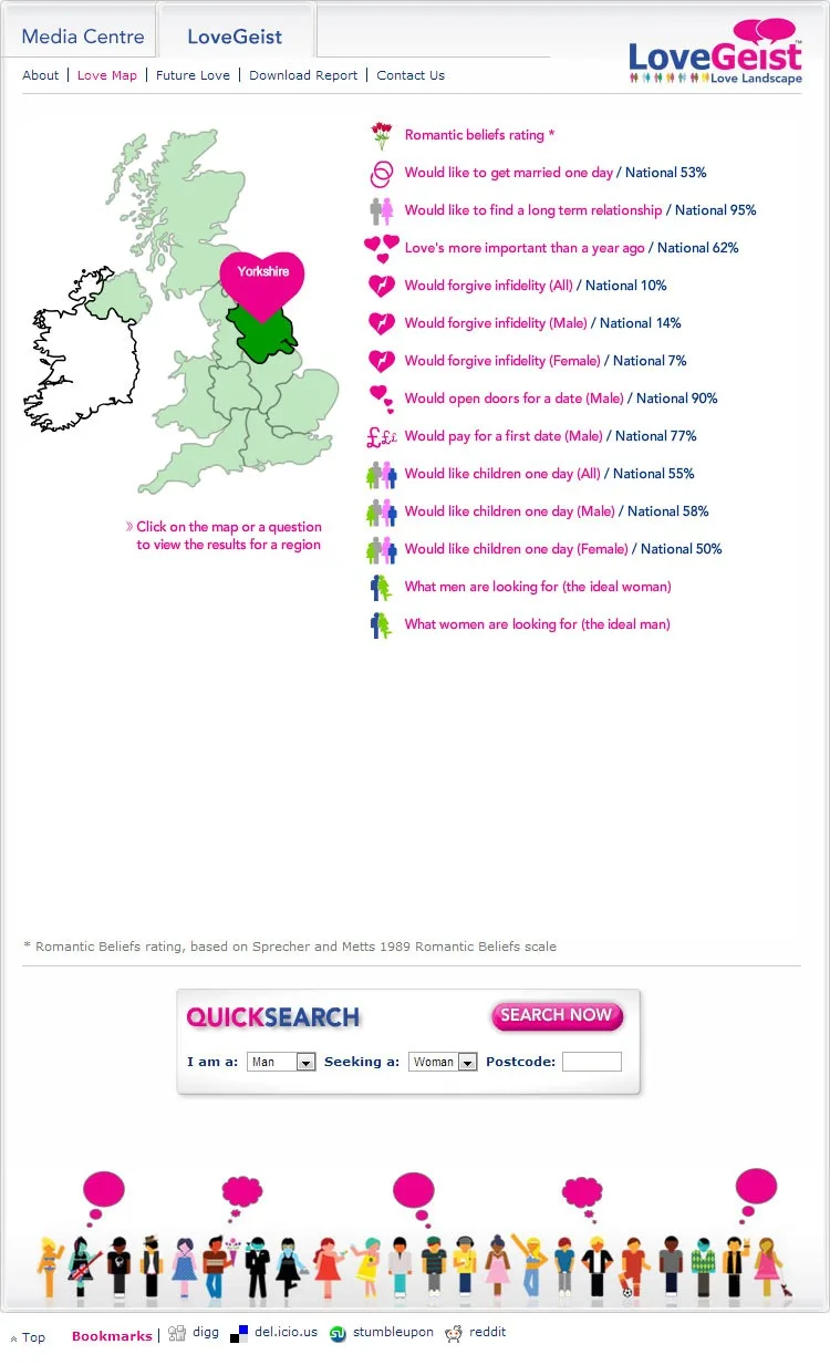 XML driven Flash based information pages to deliver the data found in the Match.com Lovegeist survey.