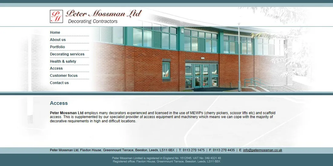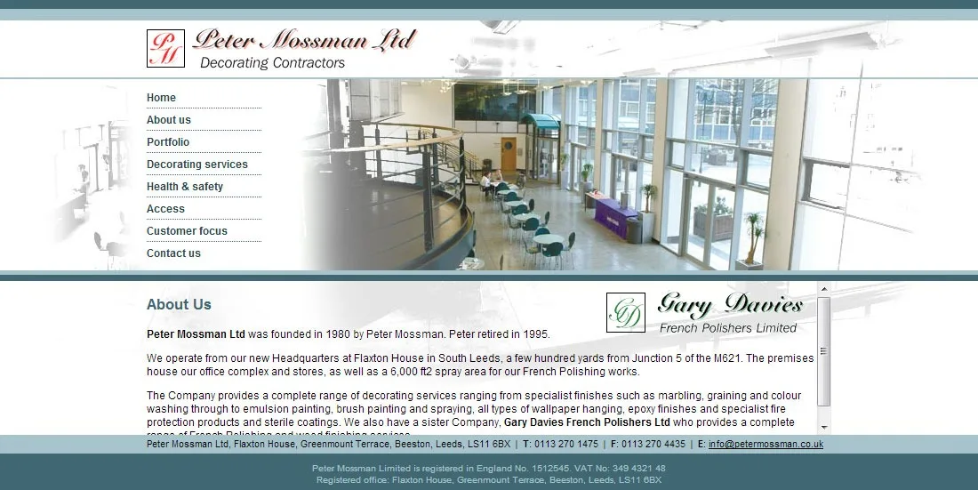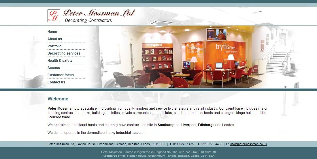 Peter Mossman Decorators website Brochure website for Peter Mossman Decorators. CSS Dreamweaver HTML Photoshop Website design View more projects
