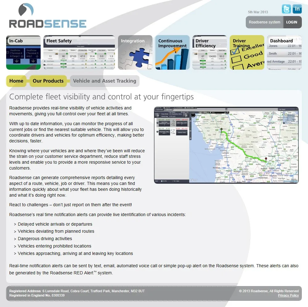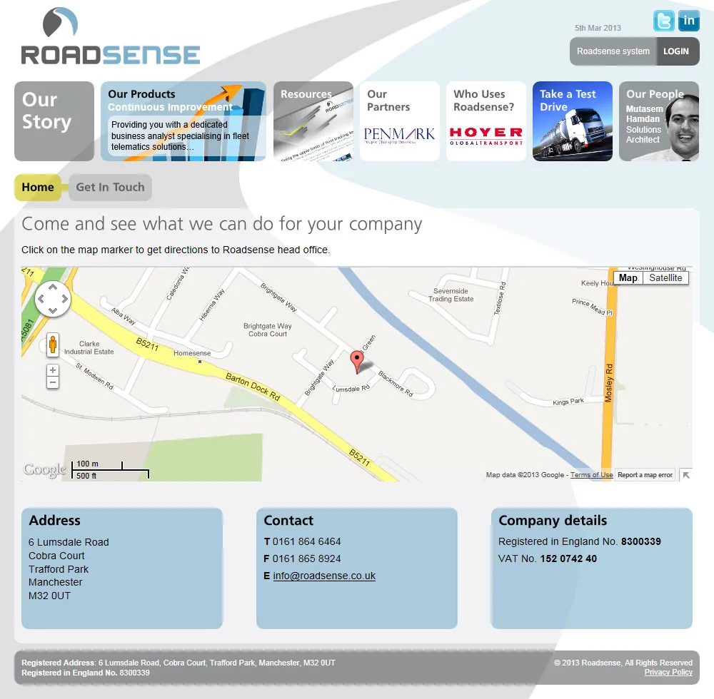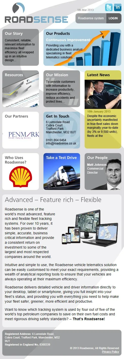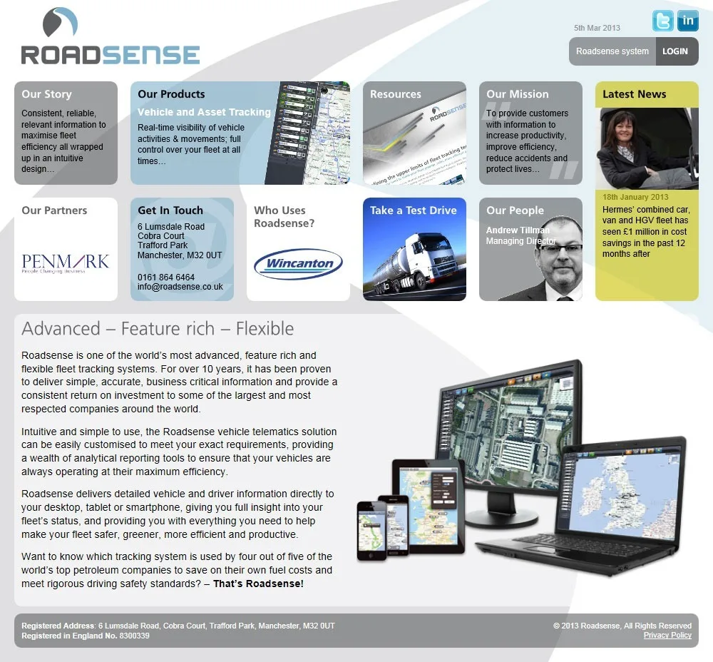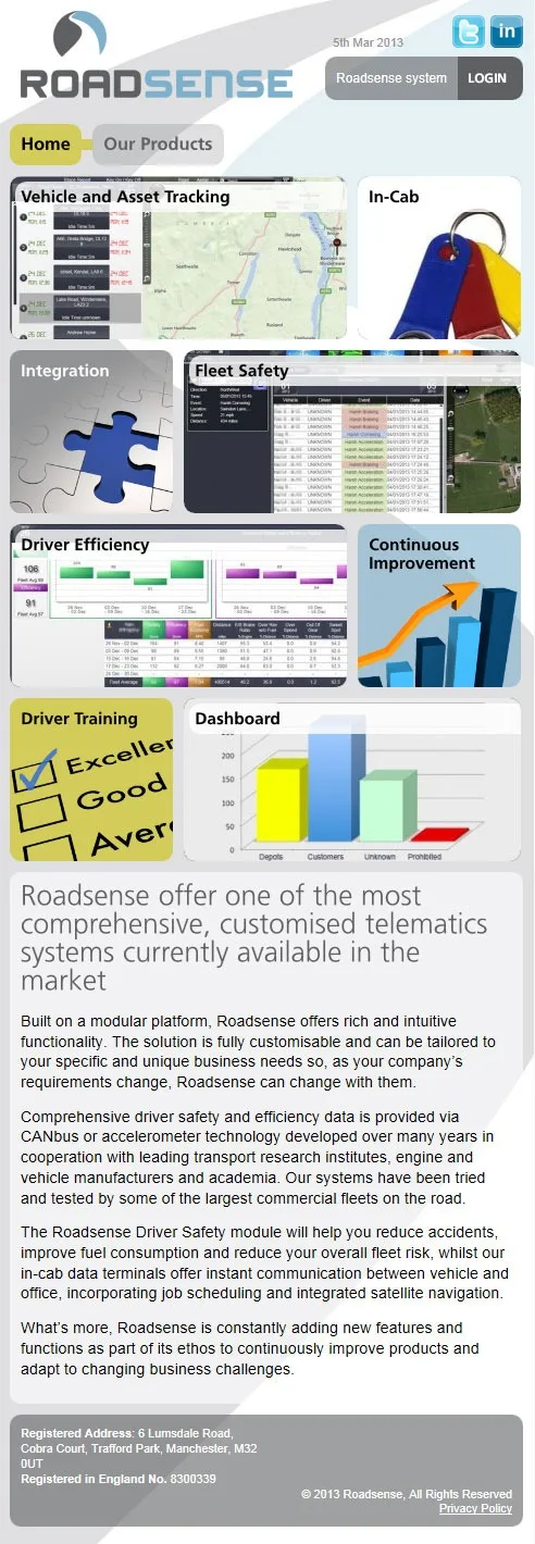 An HTML5, CSS3 and Jquery responsive Wordpress website for Roadsense.