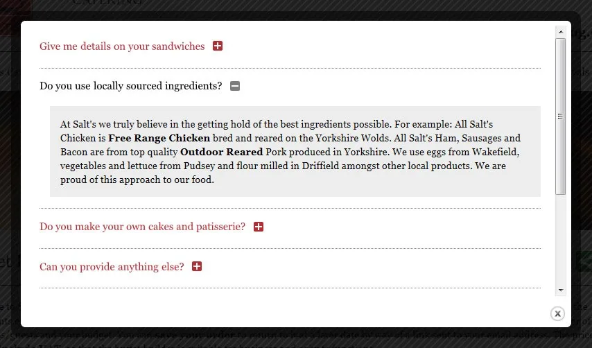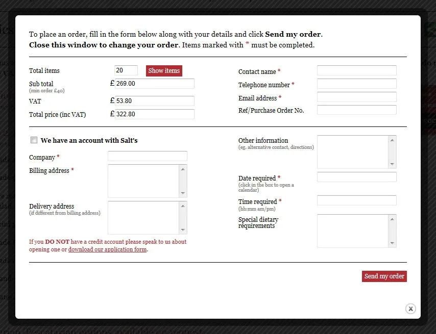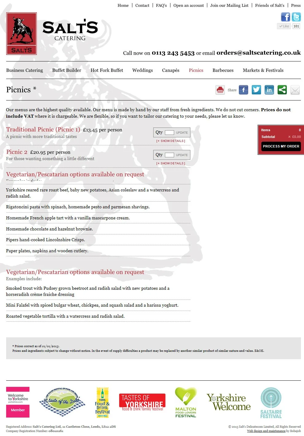 Salt’s Catering ASP.NET website ASP.NET VB website for Salt's Catering with bespoke ordering system. ASP.NET CSS Dreamweaver HTML5 Illustrator jQuery Photoshop VB.NET Website design View more projects