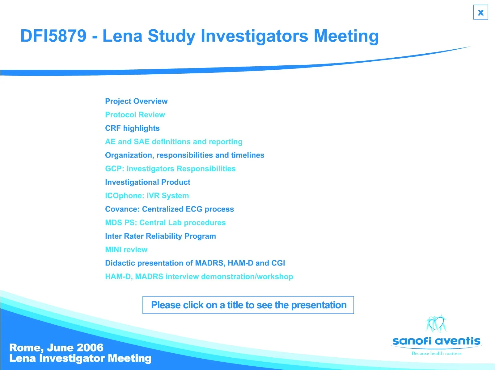 Sanofi Aventis CD-ROM menu navigation CD-ROM menu navigation for Sanofi Aventis delegate information built with Flash and mProjector. AS2 Flash Illustrator mProjector View more projects