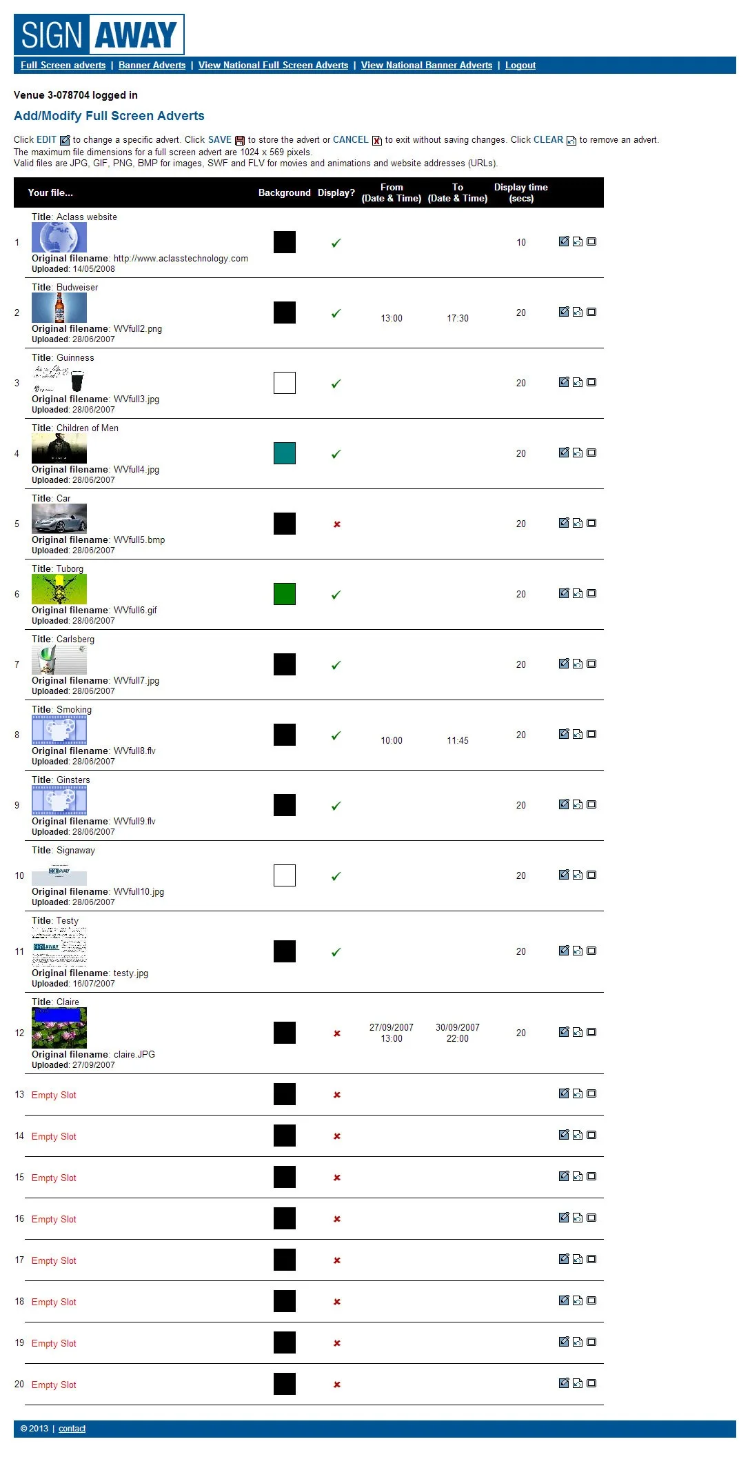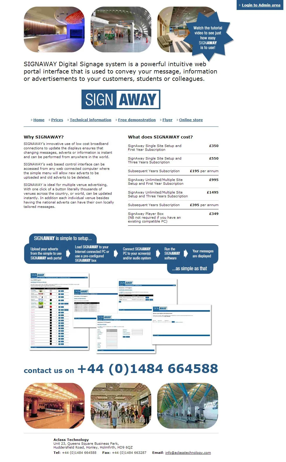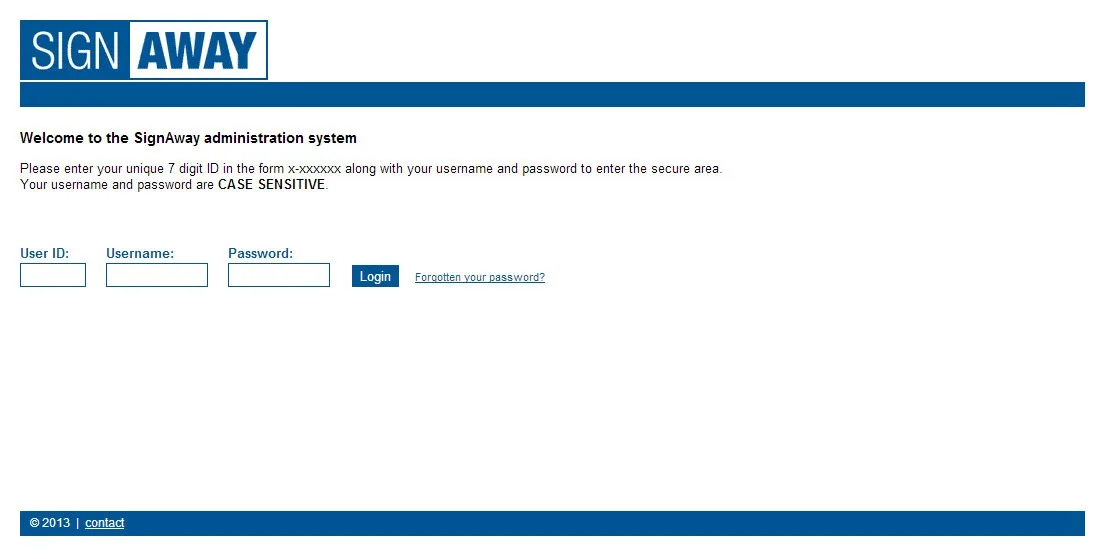 Website for SignAway Digital Signage System with bespoke ASP.NET CMS, three tier login and configurable display pages.
