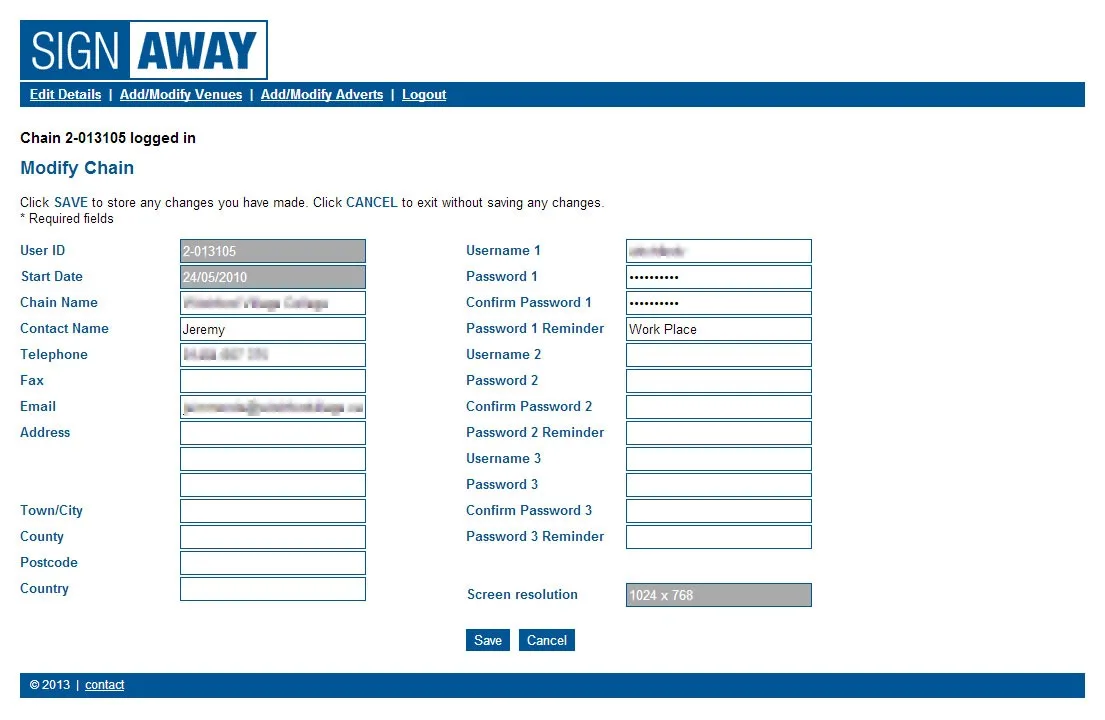 SignAway administration area My Details