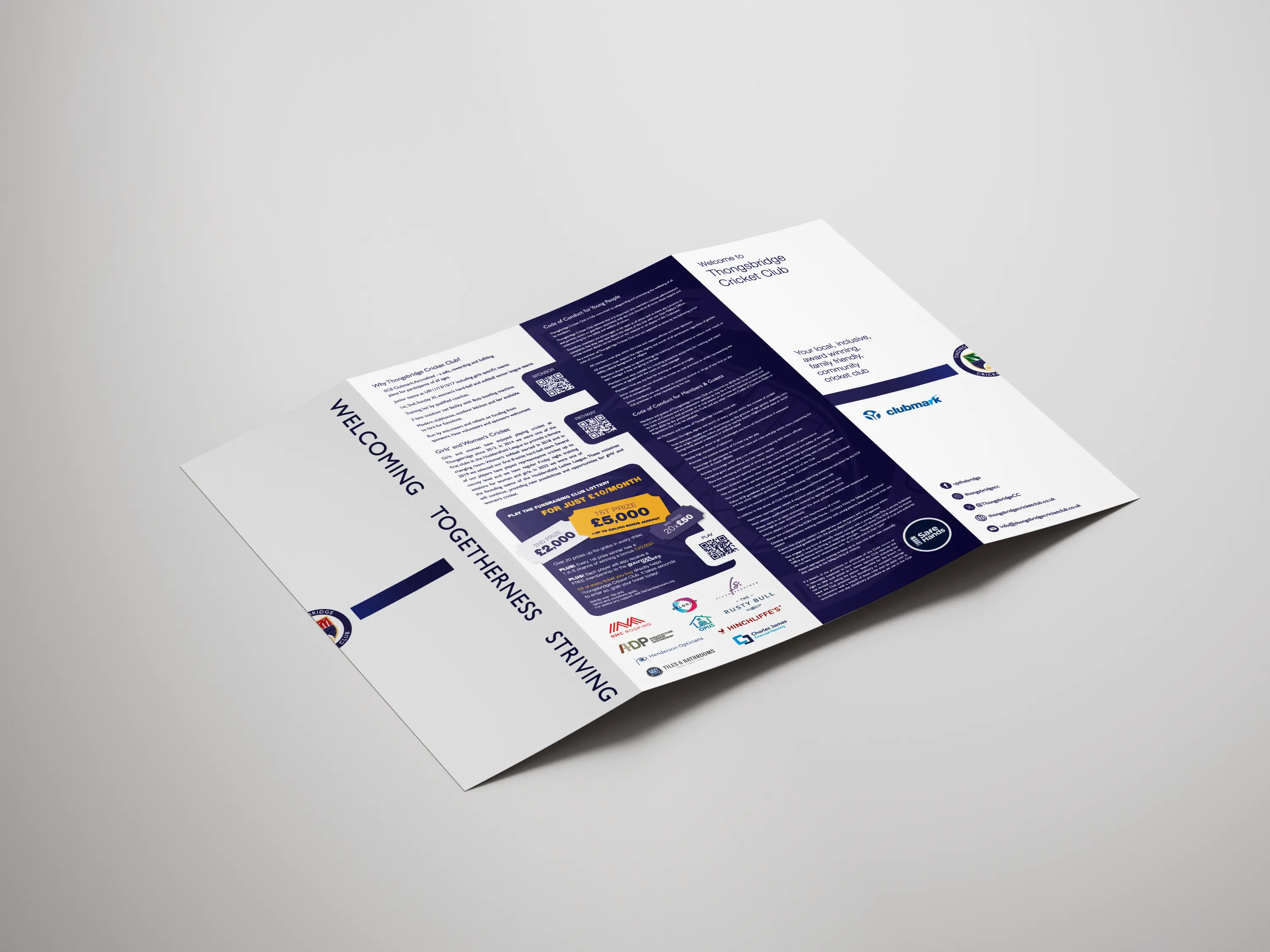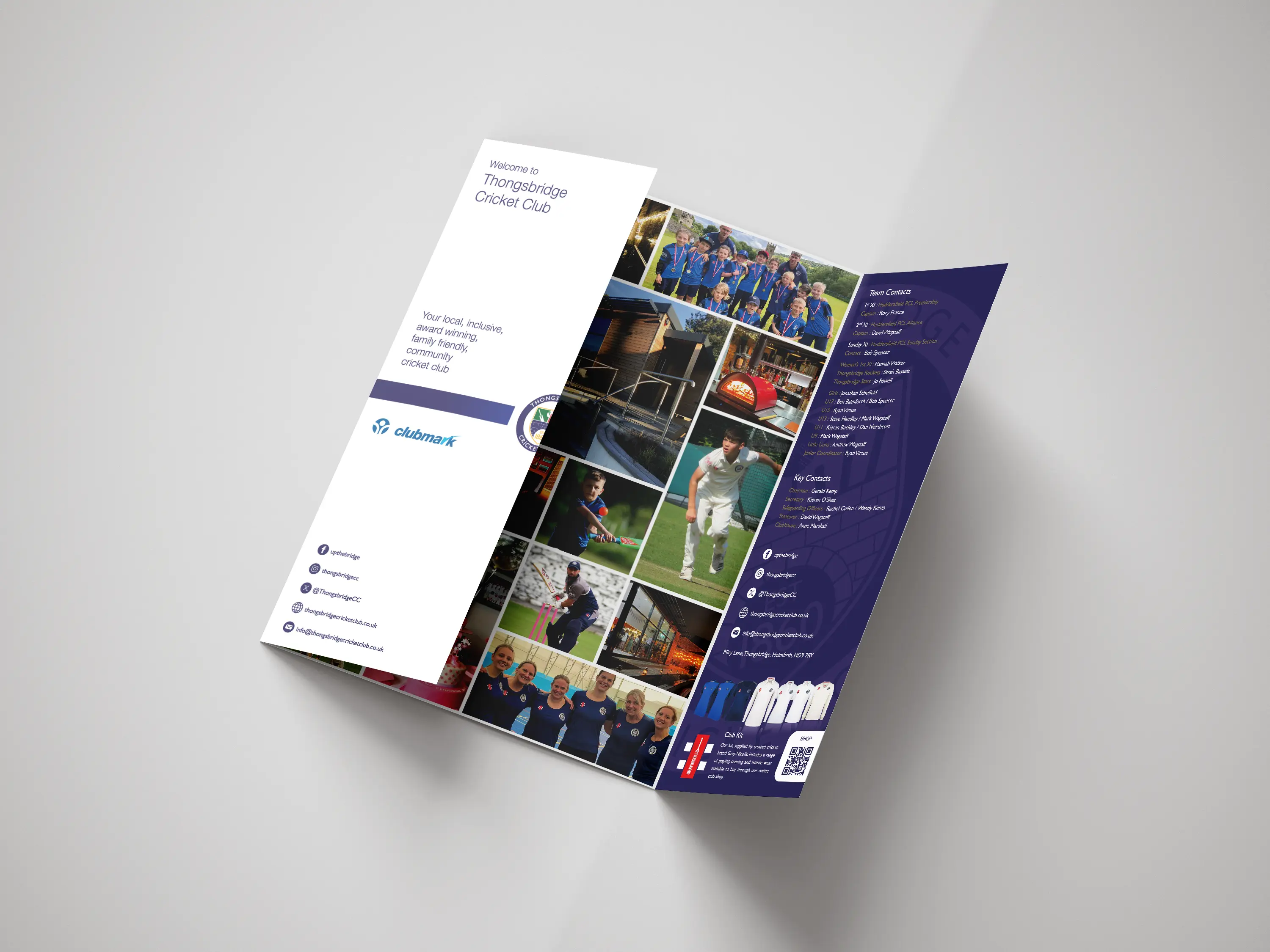 Thongsbridge Cricket Club 2025 Sign-on Pack Thongsbridge CC A3 gatefold A4 sign-on pack for new and existing 2025 members Illustrator InDesign Photography Photoshop Print design Project management QR codes View more projects