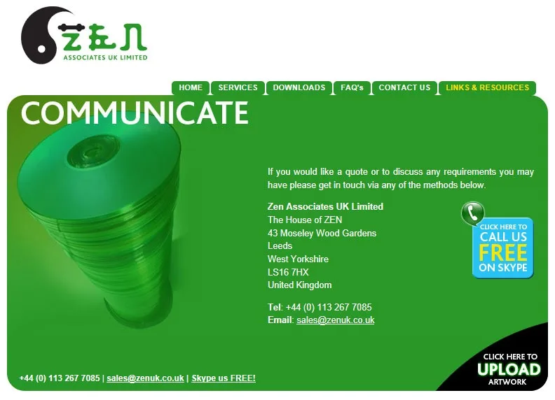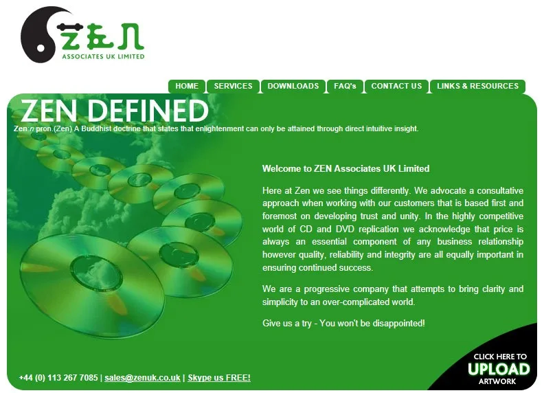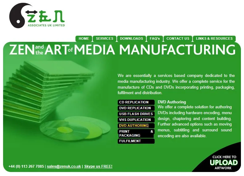 Website for Zen CD and DVD replicators with links to downloadable templates.